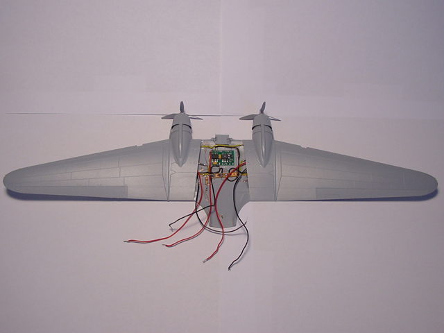 Die vormontierten Flügel mit eingesetzten Motoren, Positionsleuchten, und Funktionsbaustein FCS-1