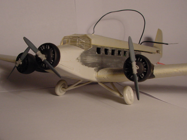 von vorne, Motoren und Propeller lackiert, Fahrwerk wird aus Messing neu konstruiert, Dach bleibt als "Serviceklappe" zu öffnen